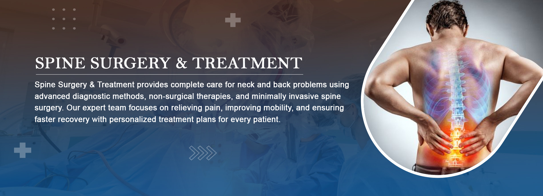 Dr. Bhujbal holds prestigious fellowships including FISS and FMISS,FIJR with extensive hands-on experience in minimally invasive spine surgery-treatment procedures, tubular decompressions, percutaneous spinal instrumentation, endoscopic spine procedures, and complex joint Replacement surgeries. His clinical proficiency also includes precision-guided pain interventions such as radiofrequency ablations (RFA), selective nerve root blocks (SNRB), cervical and lumbar epidural injections, and targeted treatments for spine, knee, and hip pain.